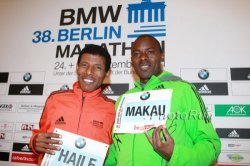 Damien termine le marathon de Berlin en 2h24'48 et Bernard en 3h27'52. Voir leurs temps de passage à la rubrique résultats.